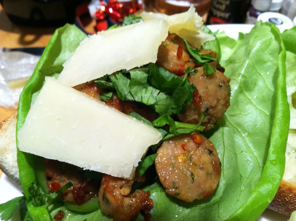 “The sausage was buttery, nicely balanced by the tomatillo quickle, and the cilantro gave it a fresh pop. I don’t think the Manchego was necessary. Next time, slice the sausage length-wise. Also I’d like a little more heat and little more cilantro, but this is a sandwich I’d definitely eat again.”