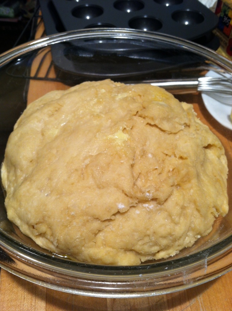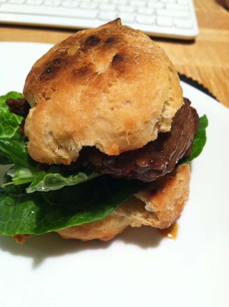 I adapted the recipe from food.com, willfully ignoring “Bread Machine” in the title, as I don’t have one. This might be why they turned out more like biscuits than bread: