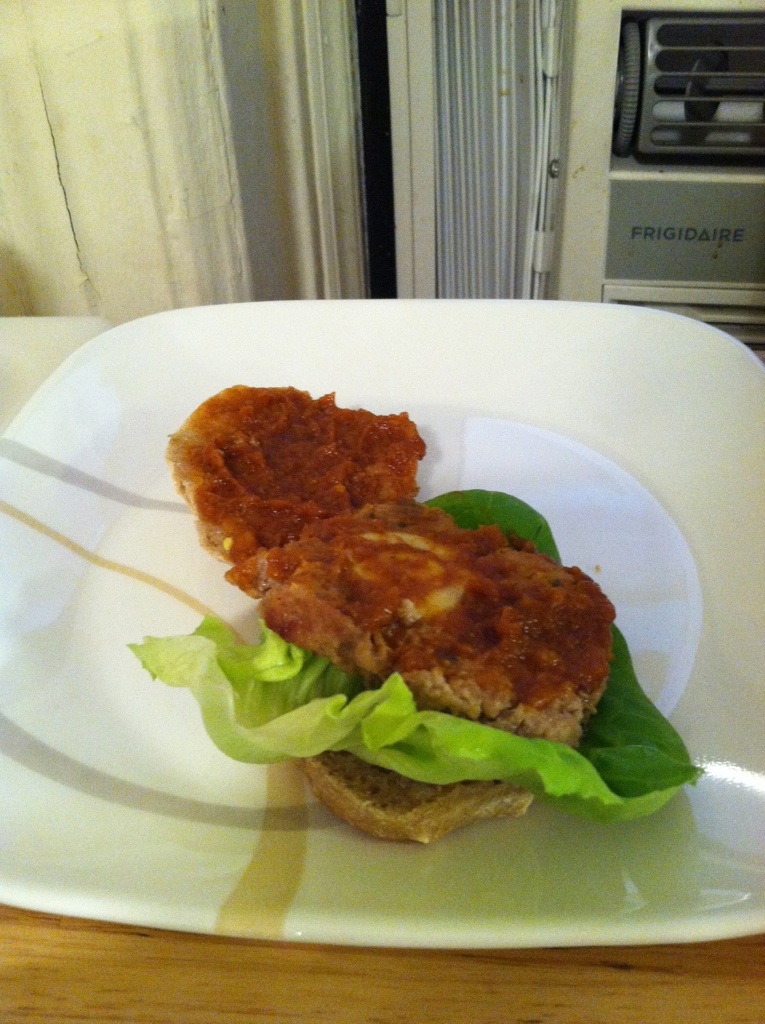 1/2 c. fresh bread crumbs — I used a Filipino dinner roll called Pan de Sal — soaked in 1/4 c. low sodium organic chicken broth