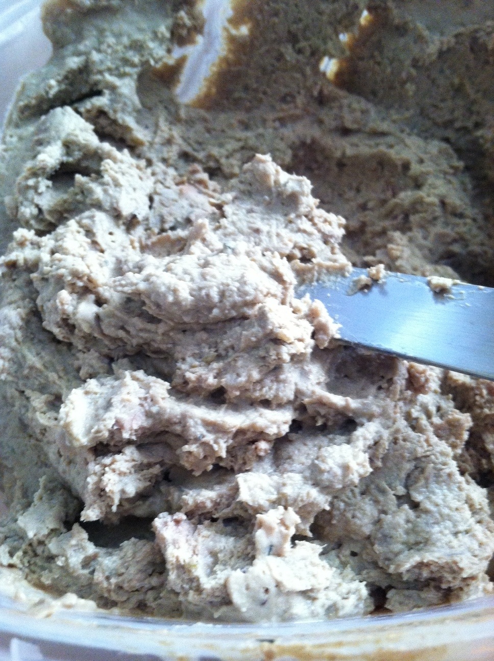 Once the livers cooled, I added the salt, pepper and Pinot Noir grape juice and puréed it in a food processor. You’re supposed to chill it before folding in the whipped cream, but I spaced on that. Luckily, the liver puree was cool enough so the whipped cream didn’t lose its fluff-making power. Then I chilled the liver purée.