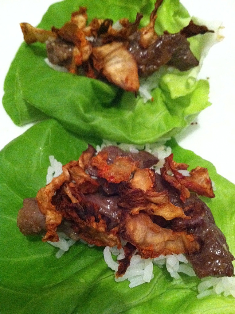 For the lettuce, I tried both Boston lettuce (which is also known as Bibb or Butterhead lettuce) and Tropicana Green Leaf. The Trop had larger leaves, so were easier to use as wrapping.