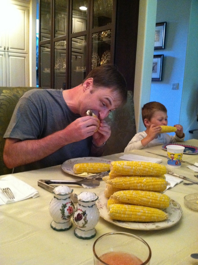 And his sons, Jacob and Benny (the little guy munching on the corn):