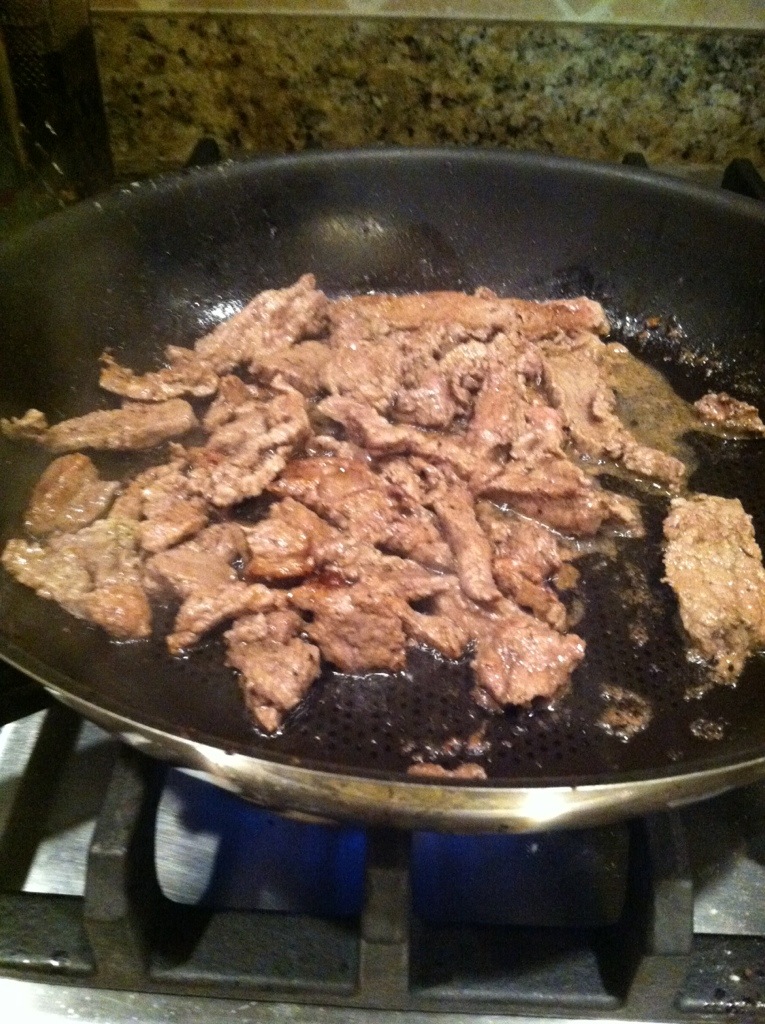 And I sauteed the sliced steak — which was marinated overnight in Cavender’s Greek Seasoning, lemon juice and olive oil — in a tablespoon of butter, and I dressed the arugula with olive oil, freshly ground pepper and lime and grapefruit juice.