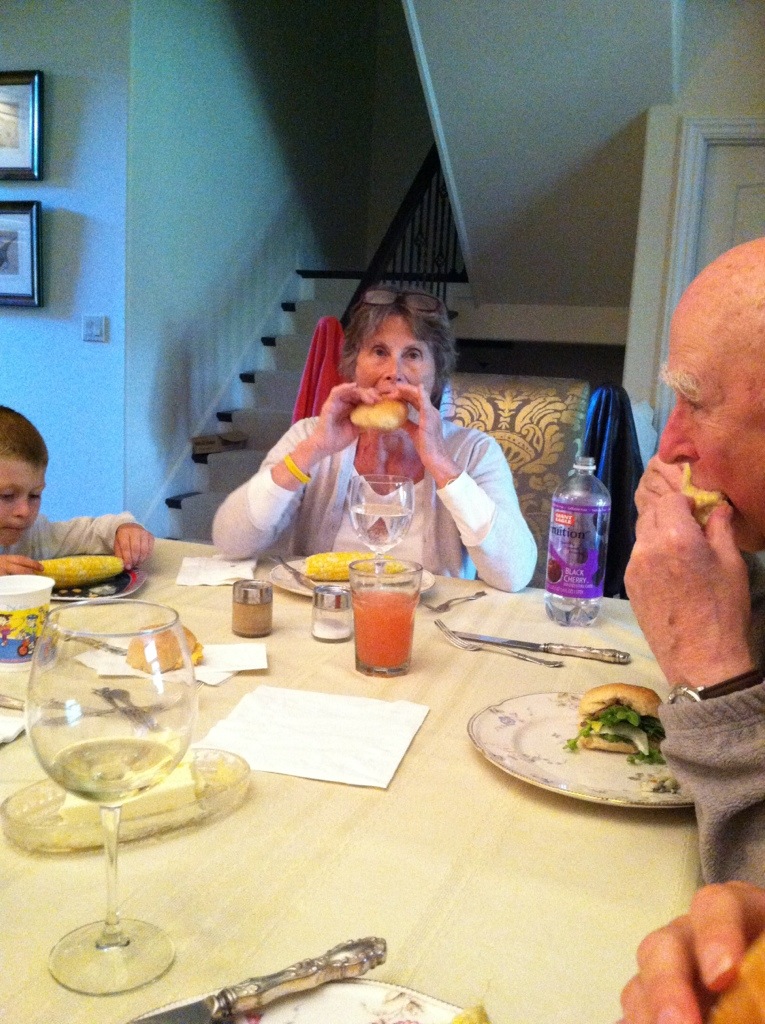 The kiddies got modified versions: They both had the bread with butter, and a side of corn, and Jacob also tried a roll with steak and American cheese, but no arugula or slaw. “I like this sandwich,” he said.