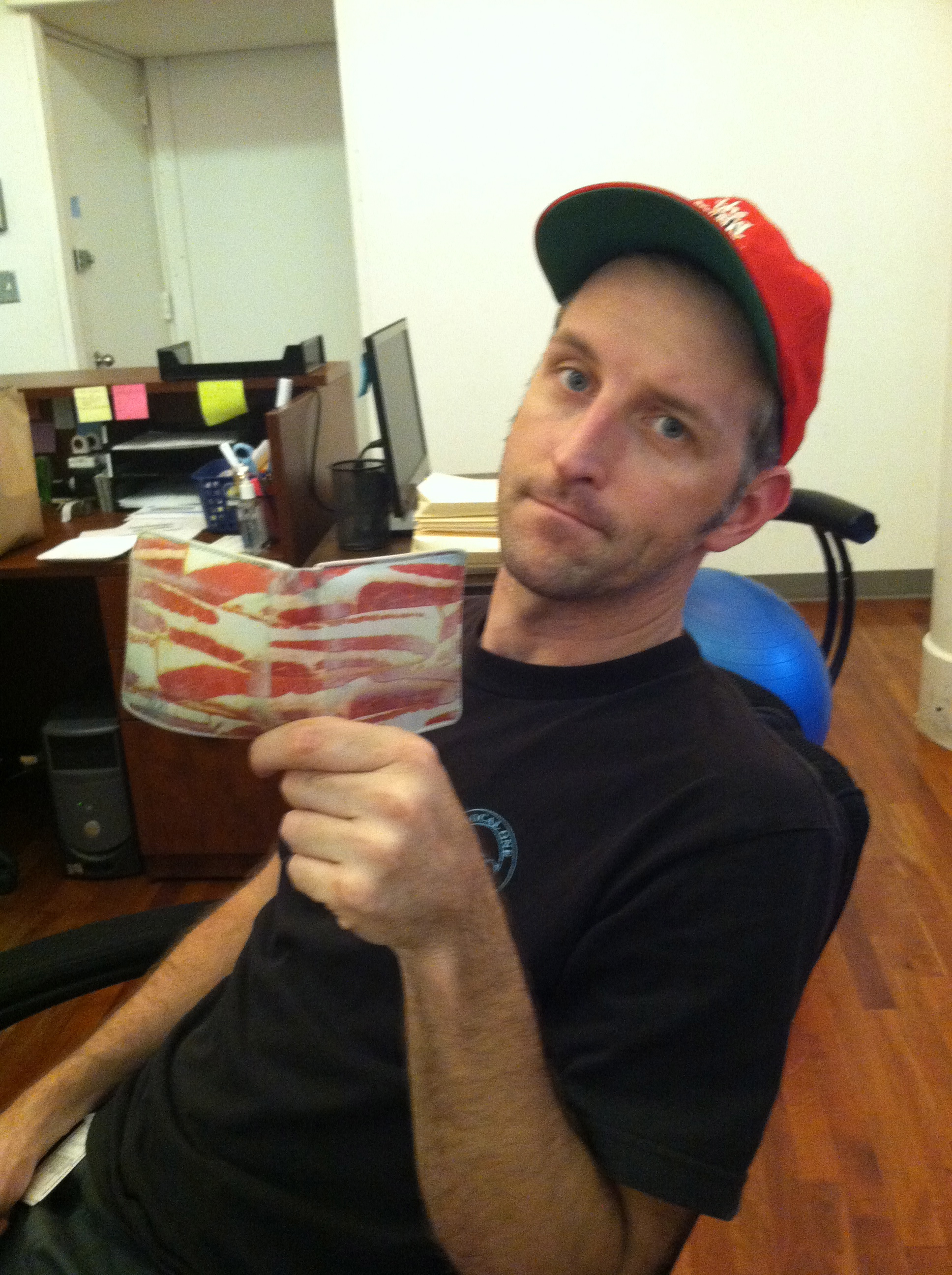 “The one that says ‘Bacon, Motherfucker‘ on it.”)