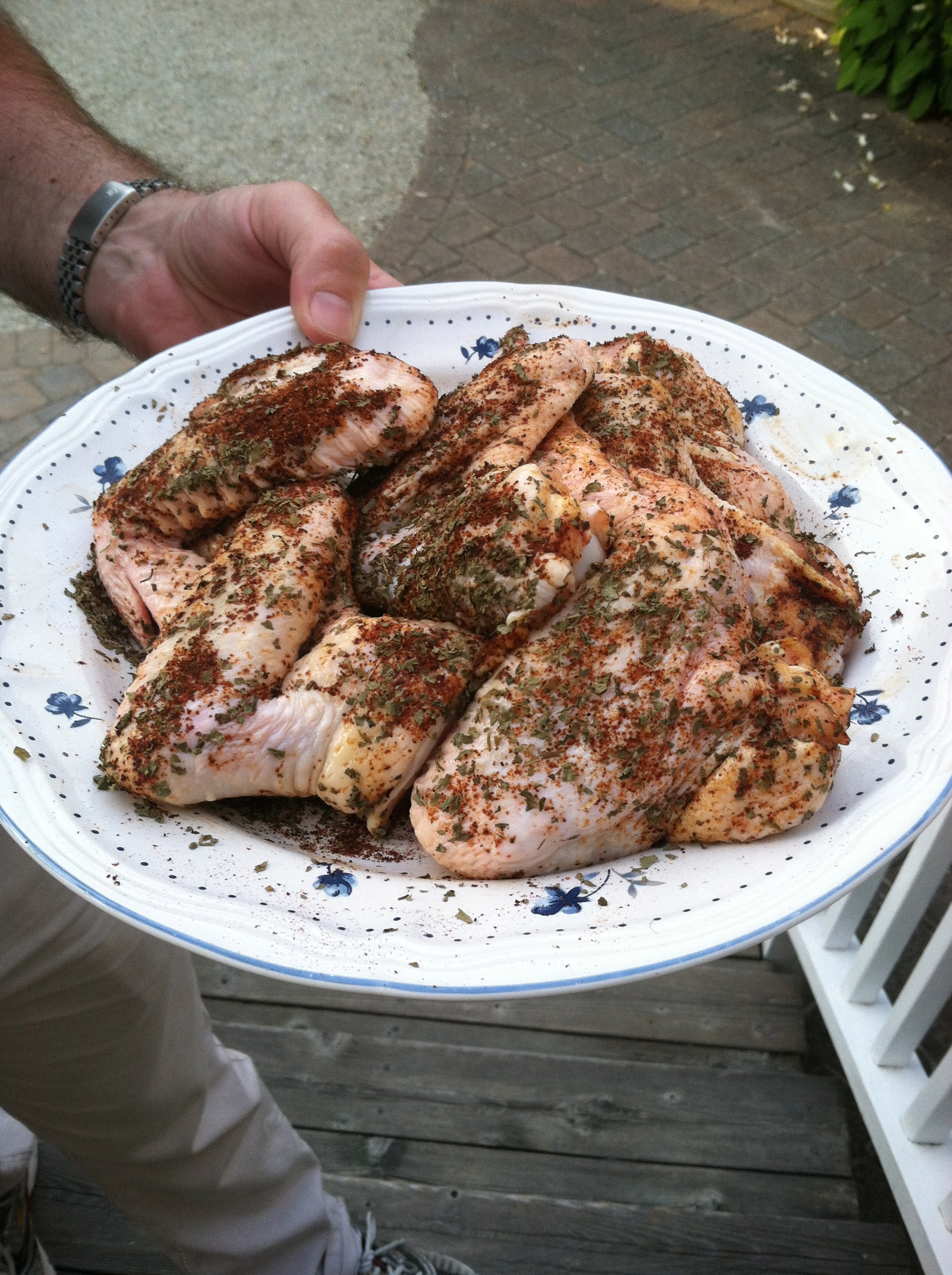 Coat both sides of the thighs in a dry rub of paprika and dried cilantro.