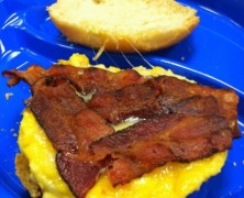 Cheesy Creamed Corn Frittata with Bacon Sandwich